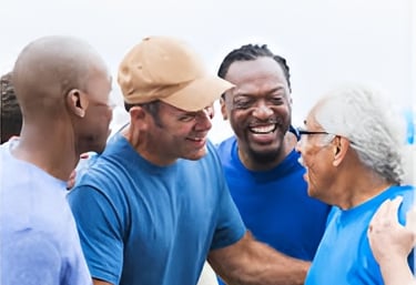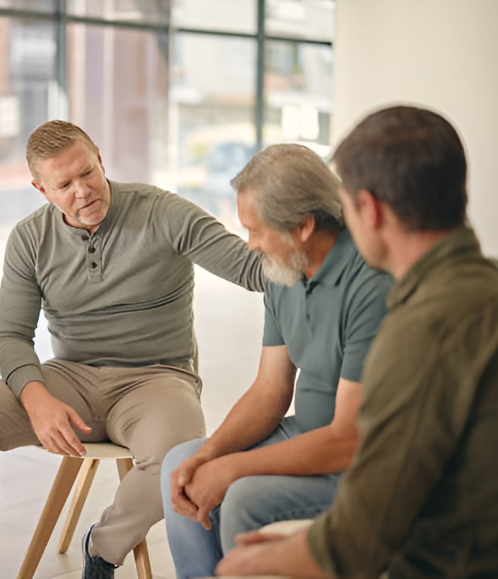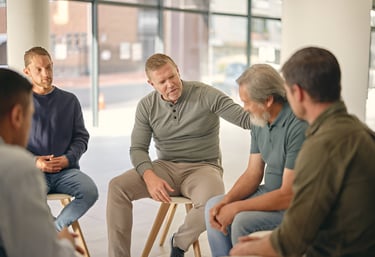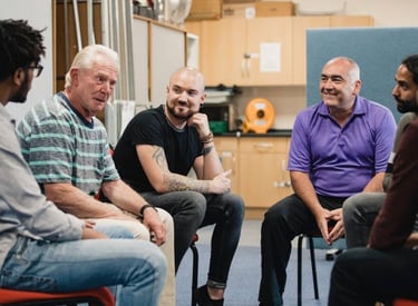Safe spaces where men share stories and rebuild confidence together